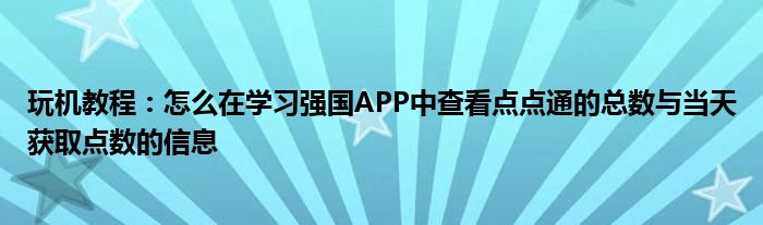 目前,使用學(xué)習(xí)強(qiáng)國APP的用戶越來越多,但不少用戶還不知道新推出的積分功能點(diǎn)點(diǎn)通怎么使用,現(xiàn)在我就來說說在點(diǎn)點(diǎn)通查看總數(shù)與當(dāng)天獲取數(shù)信息的方法。