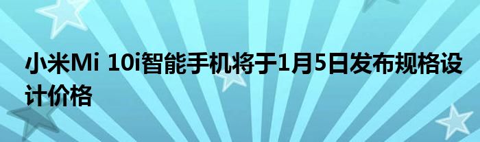 Mi 10i India的發布時間定于1月5日,它將是一個在線活動,將在小米的社交媒體上進行直播,包括Facebook和YouTube。