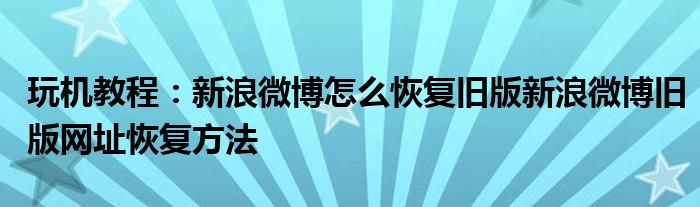 今天小編為大家帶來的是新浪微博舊版網址恢復方法,感興趣的朋友就和小編一起來看看吧。