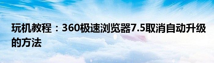 如何取消360極速瀏覽器7.5版本自動升級?