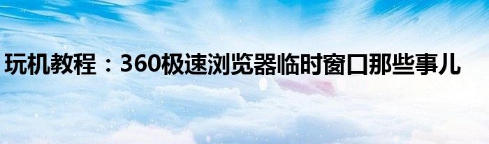 今天要來給大家介紹下360極速瀏覽器臨時窗口那些事兒,之所以要來給大家針對這個360極速瀏覽器臨時窗口那些事兒進行一個介紹的主要目的是現(xiàn)在很多小伙伴門對于360極速瀏覽器臨時窗口那些事兒了解是非常少的,都不知道具體的是怎么回事,那么感興趣的小伙伴可以看下下面的介紹哦。