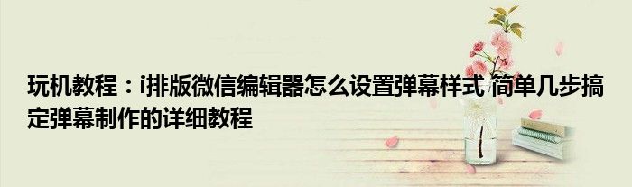 今天要來給大家介紹下i排版微信編輯器怎么設(shè)置彈幕樣式 簡單幾步搞定彈幕制作的詳細(xì)教程,之所以要來給大家針對這個i排版微信編輯器怎么設(shè)置彈幕樣式 簡單幾步搞定彈幕制作的詳細(xì)教程進(jìn)行一個介紹的主要目的是現(xiàn)在很多小伙伴門對于i排版微信編輯器怎么設(shè)置彈幕樣式 簡單幾步搞定彈幕制作的詳細(xì)教程了解是非常少的,都不知道具體的是怎么回事,那么感興趣的小伙伴可以看下下面的介紹哦。