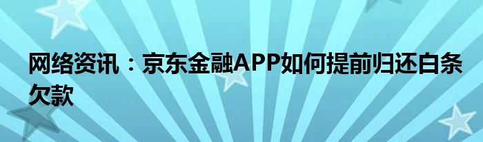 以上就是關于京東金融APP如何提前歸還白條欠款這方面的一些信息了 小編整理的這些訊息希望對童鞋們有所幫助。
