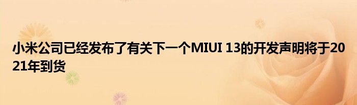 隨著MIUI 12在所有符合條件的小米設備上逐步推出,該公司已經發布了有關下一個MIUI 13的開發聲明,該聲明將于2021年到貨。