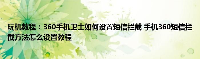 360手機(jī)衛(wèi)士怎么設(shè)置短信攔截?很多網(wǎng)友反映手機(jī)上收到太多垃圾短信了,現(xiàn)在防騷擾攔截的軟件五花八門,360手機(jī)衛(wèi)士是目前安全且實(shí)用的軟件之一,但是手機(jī)360怎么攔截短信呢?下面和小編一起來(lái)看看360垃圾短信攔截設(shè)置方法吧~有需要的朋友往下咯~