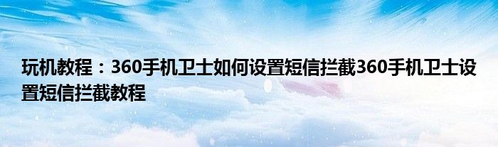 今天要來給大家介紹下360手機衛士如何設置短信攔截360手機衛士設置短信攔截教程,之所以要來給大家針對這個360手機衛士如何設置短信攔截360手機衛士設置短信攔截教程進行一個介紹的主要目的是現在很多小伙伴門對于360手機衛士如何設置短信攔截360手機衛士設置短信攔截教程了解是非常少的,都不知道具體的是怎么回事,那么感興趣的小伙伴可以看下下面的介紹哦。
