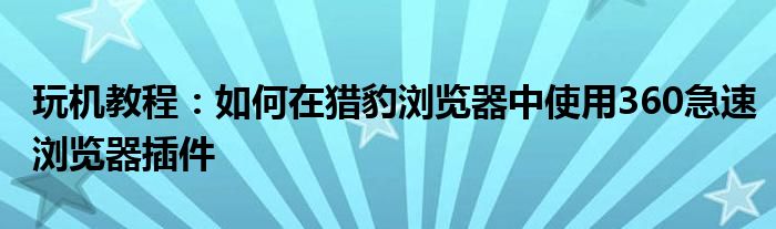 今天要來給大家介紹下如何在獵豹瀏覽器中使用360急速瀏覽器插件,之所以要來給大家針對這個如何在獵豹瀏覽器中使用360急速瀏覽器插件進行一個介紹的主要目的是現(xiàn)在很多小伙伴門對于如何在獵豹瀏覽器中使用360急速瀏覽器插件了解是非常少的,都不知道具體的是怎么回事,那么感興趣的小伙伴可以看下下面的介紹哦。
