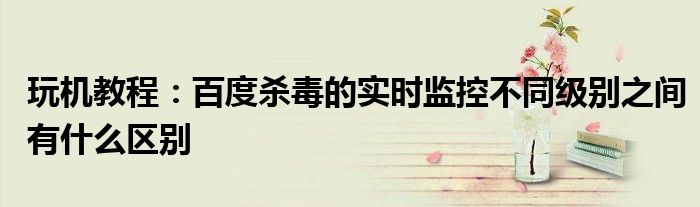 今天要來給大家介紹下百度殺毒的實時監控不同級別之間有什么區別,之所以要來給大家針對這個百度殺毒的實時監控不同級別之間有什么區別進行一個介紹的主要目的是現在很多小伙伴門對于百度殺毒的實時監控不同級別之間有什么區別了解是非常少的,都不知道具體的是怎么回事,那么感興趣的小伙伴可以看下下面的介紹哦。