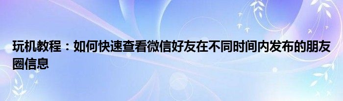 今天要來給大家介紹下如何快速查看微信好友在不同時間內發布的朋友圈信息,之所以要來給大家針對這個如何快速查看微信好友在不同時間內發布的朋友圈信息進行一個介紹的主要目的是現在很多小伙伴門對于如何快速查看微信好友在不同時間內發布的朋友圈信息了解是非常少的,都不知道具體的是怎么回事,那么感興趣的小伙伴可以看下下面的介紹哦。