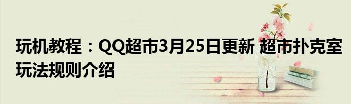 今天要來給大家介紹下QQ超市3月25日更新 超市撲克室玩法規則介紹,之所以要來給大家針對這個QQ超市3月25日更新 超市撲克室玩法規則介紹進行一個介紹的主要目的是現在很多小伙伴門對于QQ超市3月25日更新 超市撲克室玩法規則介紹了解是非常少的,都不知道具體的是怎么回事,那么感興趣的小伙伴可以看下下面的介紹哦。