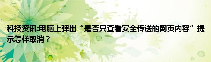 最近關于電腦上彈出“是否只查看安全傳送的網頁內容”提示怎樣取消?在網上的熱度是非常高的,很多網友們也都是非常關注電腦上彈出“是否只查看安全傳送的網頁內容”提示怎樣取消?這個事情,為此小編也是在網上進行了一番搜索查閱相關的信息,那么如果說有感興趣的網友們想知道具體的情況的話,小編就把自己所搜集到的一些信息分享給大家吧。