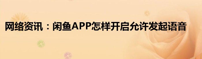 以上就是關(guān)于閑魚(yú)APP怎樣開(kāi)啟允許發(fā)起語(yǔ)音這方面的一些信息了 小編整理的這些訊息希望對(duì)童鞋們有所幫助。