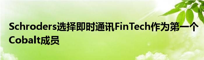 英國資產管理公司施羅德斯宣布,Qwil Messenger成為第一家加入Cobalt駐地計劃的金融科技公司。