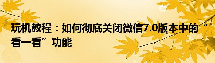 以上就是小編為大家介紹的關(guān)閉微信7.0版本中的“看一看”功能的方法,希望能幫到你~