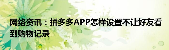 以上就是關(guān)于拼多多APP怎樣設(shè)置不讓好友看到購物記錄這方面的一些信息了 小編整理的這些訊息希望對童鞋們有所幫助。