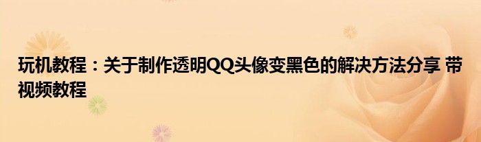 今天要來給大家介紹下關于制作透明QQ頭像變黑色的解決方法分享 帶視頻教程,之所以要來給大家針對這個關于制作透明QQ頭像變黑色的解決方法分享 帶視頻教程進行一個介紹的主要目的是現在很多小伙伴門對于關于制作透明QQ頭像變黑色的解決方法分享 帶視頻教程了解是非常少的,都不知道具體的是怎么回事,那么感興趣的小伙伴可以看下下面的介紹哦。