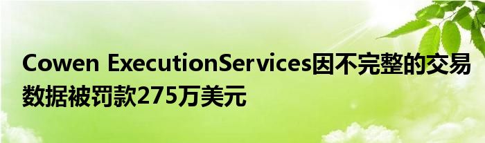 金融監管機構向Cowen Execution Services提交了275萬美元的罰款,用于提交不完整的證券和交易信息。