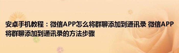 如今使用安卓手機的小伙伴們是越來越多了,那么安卓手機當中是有很多小技巧的,這些技巧很多小伙伴一般都是不知道如何來實用的,就好比最近就有很多小伙伴們想要知道微信APP怎么將群聊添加到通訊錄 微信APP將群聊添加到通訊錄的方法步驟 ,那么既然現(xiàn)在大家對于微信APP怎么將群聊添加到通訊錄 微信APP將群聊添加到通訊錄的方法步驟 都感興趣,小編就來給大家分享下關于微信APP怎么將群聊添加到通訊錄 微信APP將群聊添加到通訊錄的方法步驟 的一些信息吧。