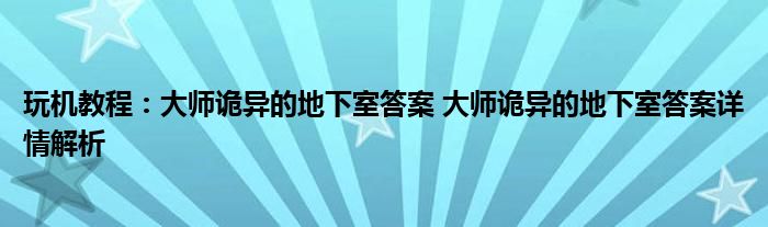 今天要來給大家介紹下大師詭異的地下室答案 大師詭異的地下室答案詳情解析,之所以要來給大家針對這個大師詭異的地下室答案 大師詭異的地下室答案詳情解析進行一個介紹的主要目的是現(xiàn)在很多小伙伴門對于大師詭異的地下室答案 大師詭異的地下室答案詳情解析了解是非常少的,都不知道具體的是怎么回事,那么感興趣的小伙伴可以看下下面的介紹哦。