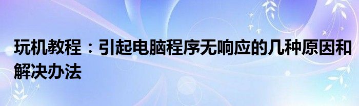 今天要來給大家介紹下引起電腦程序無響應(yīng)的幾種原因和解決辦法,之所以要來給大家針對(duì)這個(gè)引起電腦程序無響應(yīng)的幾種原因和解決辦法進(jìn)行一個(gè)介紹的主要目的是現(xiàn)在很多小伙伴門對(duì)于引起電腦程序無響應(yīng)的幾種原因和解決辦法了解是非常少的,都不知道具體的是怎么回事,那么感興趣的小伙伴可以看下下面的介紹哦。