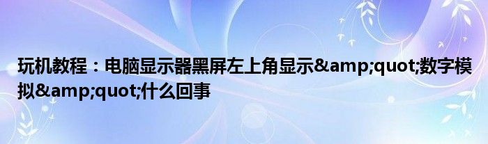 今天要來給大家介紹下電腦顯示器黑屏左上角顯示"數(shù)字模擬"什么回事,之所以要來給大家針對(duì)這個(gè)電腦顯示器黑屏左上角顯示"數(shù)字模擬"什么回事進(jìn)行一個(gè)介紹的主要目的是現(xiàn)在很多小伙伴門對(duì)于電腦顯示器黑屏左上角顯示"數(shù)字模擬"什么回事了解是非常少的,都不知道具體的是怎么回事,那么感興趣的小伙伴可以看下下面的介紹哦。