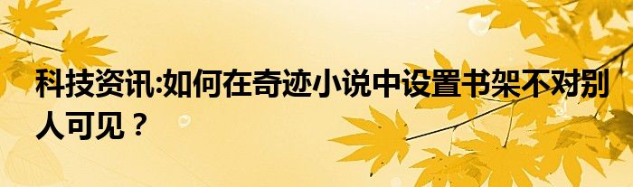 以上便是小編給你們帶來的如何在奇跡小說中設置書架不對別人看見的方法介紹,希望可以幫助到你們。