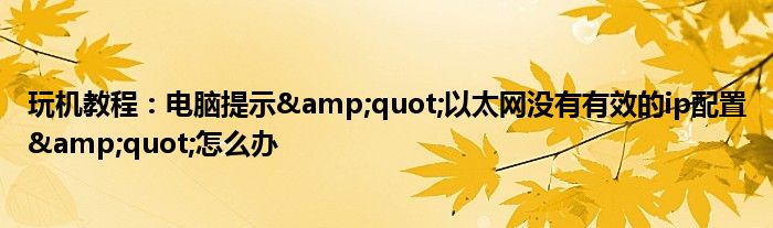 今天要來給大家介紹下電腦提示"以太網(wǎng)沒有有效的ip配置"怎么辦,之所以要來給大家針對這個電腦提示"以太網(wǎng)沒有有效的ip配置"怎么辦進行一個介紹的主要目的是現(xiàn)在很多小伙伴門對于電腦提示"以太網(wǎng)沒有有效的ip配置"怎么辦了解是非常少的,都不知道具體的是怎么回事,那么感興趣的小伙伴可以看下下面的介紹哦。