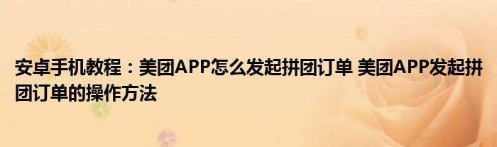 如今使用安卓手機的小伙伴們是越來越多了,那么安卓手機當中是有很多小技巧的,這些技巧很多小伙伴一般都是不知道如何來實用的,就好比最近就有很多小伙伴們想要知道美團APP怎么發起拼團訂單 美團APP發起拼團訂單的操作方法 ,那么既然現在大家對于美團APP怎么發起拼團訂單 美團APP發起拼團訂單的操作方法 都感興趣,小編就來給大家分享下關于美團APP怎么發起拼團訂單 美團APP發起拼團訂單的操作方法 的一些信息吧。