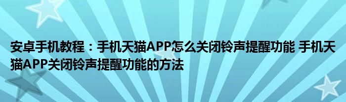 如今使用安卓手機的小伙伴們是越來越多了,那么安卓手機當中是有很多小技巧的,這些技巧很多小伙伴一般都是不知道如何來實用的,就好比最近就有很多小伙伴們想要知道手機天貓APP怎么關閉鈴聲提醒功能 手機天貓APP關閉鈴聲提醒功能的方法 ,那么既然現在大家對于手機天貓APP怎么關閉鈴聲提醒功能 手機天貓APP關閉鈴聲提醒功能的方法 都感興趣,小編就來給大家分享下關于手機天貓APP怎么關閉鈴聲提醒功能 手機天貓APP關閉鈴聲提醒功能的方法 的一些信息吧。