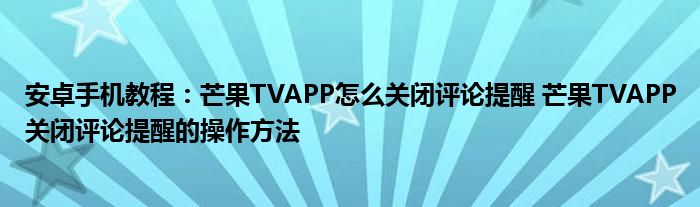 如今使用安卓手機的小伙伴們是越來越多了,那么安卓手機當中是有很多小技巧的,這些技巧很多小伙伴一般都是不知道如何來實用的,就好比最近就有很多小伙伴們想要知道芒果TVAPP怎么關閉評論提醒 芒果TVAPP關閉評論提醒的操作方法 ,那么既然現在大家對于芒果TVAPP怎么關閉評論提醒 芒果TVAPP關閉評論提醒的操作方法 都感興趣,小編就來給大家分享下關于芒果TVAPP怎么關閉評論提醒 芒果TVAPP關閉評論提醒的操作方法 的一些信息吧。