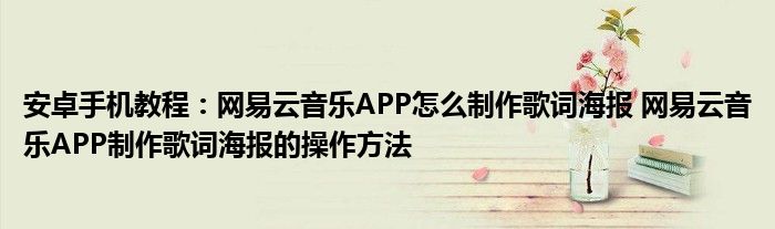 如今使用安卓手機的小伙伴們是越來越多了,那么安卓手機當中是有很多小技巧的,這些技巧很多小伙伴一般都是不知道如何來實用的,就好比最近就有很多小伙伴們想要知道網易云音樂APP怎么制作歌詞海報 網易云音樂APP制作歌詞海報的操作方法 ,那么既然現在大家對于網易云音樂APP怎么制作歌詞海報 網易云音樂APP制作歌詞海報的操作方法 都感興趣,小編就來給大家分享下關于網易云音樂APP怎么制作歌詞海報 網易云音樂APP制作歌詞海報的操作方法 的一些信息吧。