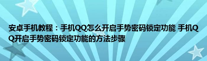 如今使用安卓手機的小伙伴們是越來越多了,那么安卓手機當中是有很多小技巧的,這些技巧很多小伙伴一般都是不知道如何來實用的,就好比最近就有很多小伙伴們想要知道手機QQ怎么開啟手勢密碼鎖定功能 手機QQ開啟手勢密碼鎖定功能的方法步驟 ,那么既然現(xiàn)在大家對于手機QQ怎么開啟手勢密碼鎖定功能 手機QQ開啟手勢密碼鎖定功能的方法步驟 都感興趣,小編就來給大家分享下關(guān)于手機QQ怎么開啟手勢密碼鎖定功能 手機QQ開啟手勢密碼鎖定功能的方法步驟 的一些信息吧。