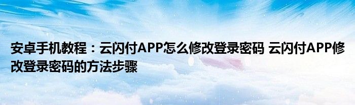 如今使用安卓手機的小伙伴們是越來越多了,那么安卓手機當中是有很多小技巧的,這些技巧很多小伙伴一般都是不知道如何來實用的,就好比最近就有很多小伙伴們想要知道云閃付APP怎么修改登錄密碼 云閃付APP修改登錄密碼的方法步驟 ,那么既然現在大家對于云閃付APP怎么修改登錄密碼 云閃付APP修改登錄密碼的方法步驟 都感興趣,小編就來給大家分享下關于云閃付APP怎么修改登錄密碼 云閃付APP修改登錄密碼的方法步驟 的一些信息吧。