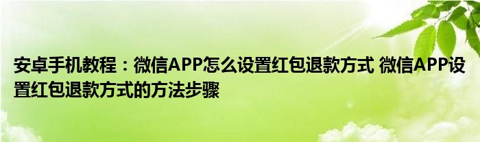如今使用安卓手機(jī)的小伙伴們是越來(lái)越多了,那么安卓手機(jī)當(dāng)中是有很多小技巧的,這些技巧很多小伙伴一般都是不知道如何來(lái)實(shí)用的,就好比最近就有很多小伙伴們想要知道微信APP怎么設(shè)置紅包退款方式 微信APP設(shè)置紅包退款方式的方法步驟 ,那么既然現(xiàn)在大家對(duì)于微信APP怎么設(shè)置紅包退款方式 微信APP設(shè)置紅包退款方式的方法步驟 都感興趣,小編就來(lái)給大家分享下關(guān)于微信APP怎么設(shè)置紅包退款方式 微信APP設(shè)置紅包退款方式的方法步驟 的一些信息吧。