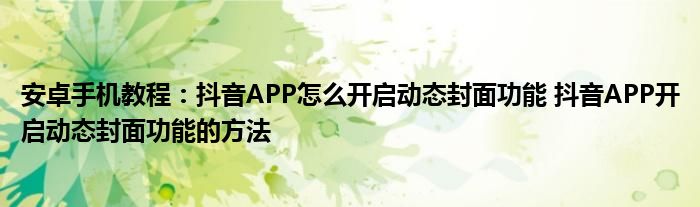 如今使用安卓手機的小伙伴們是越來越多了,那么安卓手機當中是有很多小技巧的,這些技巧很多小伙伴一般都是不知道如何來實用的,就好比最近就有很多小伙伴們想要知道抖音APP怎么開啟動態封面功能 抖音APP開啟動態封面功能的方法 ,那么既然現在大家對于抖音APP怎么開啟動態封面功能 抖音APP開啟動態封面功能的方法 都感興趣,小編就來給大家分享下關于抖音APP怎么開啟動態封面功能 抖音APP開啟動態封面功能的方法 的一些信息吧。