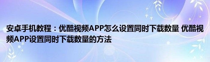 如今使用安卓手機的小伙伴們是越來越多了,那么安卓手機當中是有很多小技巧的,這些技巧很多小伙伴一般都是不知道如何來實用的,就好比最近就有很多小伙伴們想要知道優(yōu)酷視頻APP怎么設置同時下載數(shù)量 優(yōu)酷視頻APP設置同時下載數(shù)量的方法 ,那么既然現(xiàn)在大家對于優(yōu)酷視頻APP怎么設置同時下載數(shù)量 優(yōu)酷視頻APP設置同時下載數(shù)量的方法 都感興趣,小編就來給大家分享下關于優(yōu)酷視頻APP怎么設置同時下載數(shù)量 優(yōu)酷視頻APP設置同時下載數(shù)量的方法 的一些信息吧。