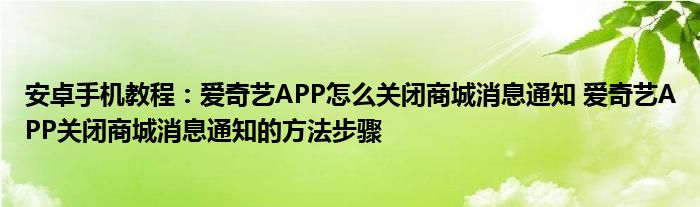 如今使用安卓手機的小伙伴們是越來越多了,那么安卓手機當中是有很多小技巧的,這些技巧很多小伙伴一般都是不知道如何來實用的,就好比最近就有很多小伙伴們想要知道愛奇藝APP怎么關閉商城消息通知 愛奇藝APP關閉商城消息通知的方法步驟 ,那么既然現在大家對于愛奇藝APP怎么關閉商城消息通知 愛奇藝APP關閉商城消息通知的方法步驟 都感興趣,小編就來給大家分享下關于愛奇藝APP怎么關閉商城消息通知 愛奇藝APP關閉商城消息通知的方法步驟 的一些信息吧。