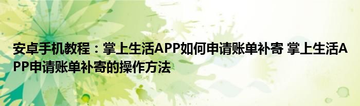 如今使用安卓手機的小伙伴們是越來越多了,那么安卓手機當中是有很多小技巧的,這些技巧很多小伙伴一般都是不知道如何來實用的,就好比最近就有很多小伙伴們想要知道掌上生活APP如何申請賬單補寄 掌上生活APP申請賬單補寄的操作方法 ,那么既然現(xiàn)在大家對于掌上生活APP如何申請賬單補寄 掌上生活APP申請賬單補寄的操作方法 都感興趣,小編就來給大家分享下關于掌上生活APP如何申請賬單補寄 掌上生活APP申請賬單補寄的操作方法 的一些信息吧。