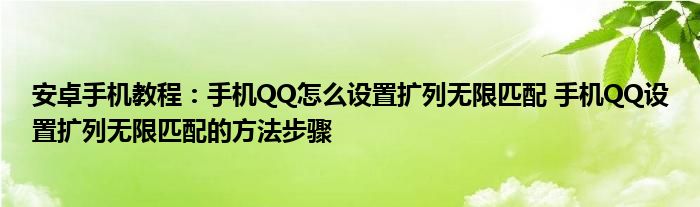如今使用安卓手機的小伙伴們是越來越多了,那么安卓手機當中是有很多小技巧的,這些技巧很多小伙伴一般都是不知道如何來實用的,就好比最近就有很多小伙伴們想要知道手機QQ怎么設置擴列無限匹配 手機QQ設置擴列無限匹配的方法步驟 ,那么既然現在大家對于手機QQ怎么設置擴列無限匹配 手機QQ設置擴列無限匹配的方法步驟 都感興趣,小編就來給大家分享下關于手機QQ怎么設置擴列無限匹配 手機QQ設置擴列無限匹配的方法步驟 的一些信息吧。