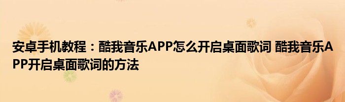 如今使用安卓手機的小伙伴們是越來越多了,那么安卓手機當中是有很多小技巧的,這些技巧很多小伙伴一般都是不知道如何來實用的,就好比最近就有很多小伙伴們想要知道酷我音樂APP怎么開啟桌面歌詞 酷我音樂APP開啟桌面歌詞的方法 ,那么既然現在大家對于酷我音樂APP怎么開啟桌面歌詞 酷我音樂APP開啟桌面歌詞的方法 都感興趣,小編就來給大家分享下關于酷我音樂APP怎么開啟桌面歌詞 酷我音樂APP開啟桌面歌詞的方法 的一些信息吧。