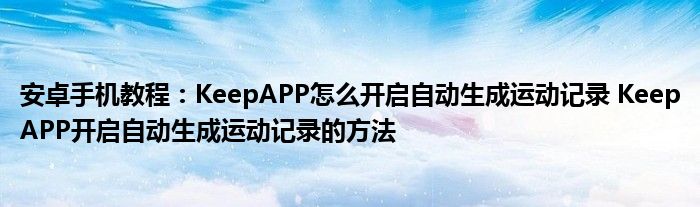 如今使用安卓手機的小伙伴們是越來越多了,那么安卓手機當中是有很多小技巧的,這些技巧很多小伙伴一般都是不知道如何來實用的,就好比最近就有很多小伙伴們想要知道KeepAPP怎么開啟自動生成運動記錄 KeepAPP開啟自動生成運動記錄的方法 ,那么既然現在大家對于KeepAPP怎么開啟自動生成運動記錄 KeepAPP開啟自動生成運動記錄的方法 都感興趣,小編就來給大家分享下關于KeepAPP怎么開啟自動生成運動記錄 KeepAPP開啟自動生成運動記錄的方法 的一些信息吧。