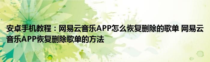 如今使用安卓手機的小伙伴們是越來越多了,那么安卓手機當中是有很多小技巧的,這些技巧很多小伙伴一般都是不知道如何來實用的,就好比最近就有很多小伙伴們想要知道網易云音樂APP怎么恢復刪除的歌單 網易云音樂APP恢復刪除歌單的方法 ,那么既然現在大家對于網易云音樂APP怎么恢復刪除的歌單 網易云音樂APP恢復刪除歌單的方法 都感興趣,小編就來給大家分享下關于網易云音樂APP怎么恢復刪除的歌單 網易云音樂APP恢復刪除歌單的方法 的一些信息吧。