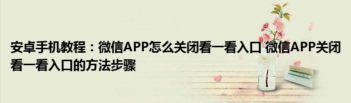 如今使用安卓手機的小伙伴們是越來越多了,那么安卓手機當中是有很多小技巧的,這些技巧很多小伙伴一般都是不知道如何來實用的,就好比最近就有很多小伙伴們想要知道微信APP怎么關閉看一看入口 微信APP關閉看一看入口的方法步驟 ,那么既然現在大家對于微信APP怎么關閉看一看入口 微信APP關閉看一看入口的方法步驟 都感興趣,小編就來給大家分享下關于微信APP怎么關閉看一看入口 微信APP關閉看一看入口的方法步驟 的一些信息吧。