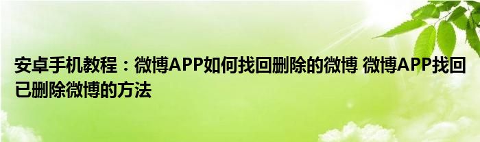如今使用安卓手機的小伙伴們是越來越多了,那么安卓手機當中是有很多小技巧的,這些技巧很多小伙伴一般都是不知道如何來實用的,就好比最近就有很多小伙伴們想要知道微博APP如何找回刪除的微博 微博APP找回已刪除微博的方法 ,那么既然現在大家對于微博APP如何找回刪除的微博 微博APP找回已刪除微博的方法 都感興趣,小編就來給大家分享下關于微博APP如何找回刪除的微博 微博APP找回已刪除微博的方法 的一些信息吧。
