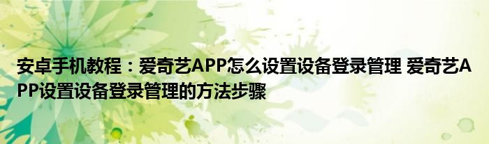 如今使用安卓手機的小伙伴們是越來越多了,那么安卓手機當中是有很多小技巧的,這些技巧很多小伙伴一般都是不知道如何來實用的,就好比最近就有很多小伙伴們想要知道愛奇藝APP怎么設置設備登錄管理 愛奇藝APP設置設備登錄管理的方法步驟 ,那么既然現在大家對于愛奇藝APP怎么設置設備登錄管理 愛奇藝APP設置設備登錄管理的方法步驟 都感興趣,小編就來給大家分享下關于愛奇藝APP怎么設置設備登錄管理 愛奇藝APP設置設備登錄管理的方法步驟 的一些信息吧。