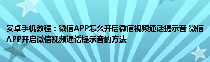 如今使用安卓手機的小伙伴們是越來越多了,那么安卓手機當中是有很多小技巧的,這些技巧很多小伙伴一般都是不知道如何來實用的,就好比最近就有很多小伙伴們想要知道微信APP怎么開啟微信視頻通話提示音 微信APP開啟微信視頻通話提示音的方法 ,那么既然現在大家對于微信APP怎么開啟微信視頻通話提示音 微信APP開啟微信視頻通話提示音的方法 都感興趣,小編就來給大家分享下關于微信APP怎么開啟微信視頻通話提示音 微信APP開啟微信視頻通話提示音的方法 的一些信息吧。