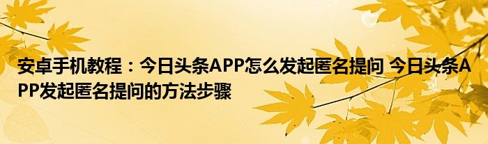 如今使用安卓手機的小伙伴們是越來越多了,那么安卓手機當中是有很多小技巧的,這些技巧很多小伙伴一般都是不知道如何來實用的,就好比最近就有很多小伙伴們想要知道今日頭條APP怎么發起匿名提問 今日頭條APP發起匿名提問的方法步驟 ,那么既然現在大家對于今日頭條APP怎么發起匿名提問 今日頭條APP發起匿名提問的方法步驟 都感興趣,小編就來給大家分享下關于今日頭條APP怎么發起匿名提問 今日頭條APP發起匿名提問的方法步驟 的一些信息吧。