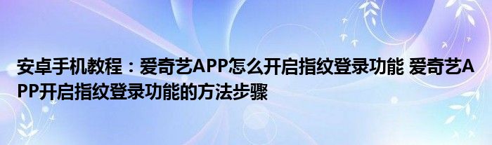 如今使用安卓手機的小伙伴們是越來越多了,那么安卓手機當中是有很多小技巧的,這些技巧很多小伙伴一般都是不知道如何來實用的,就好比最近就有很多小伙伴們想要知道愛奇藝APP怎么開啟指紋登錄功能 愛奇藝APP開啟指紋登錄功能的方法步驟 ,那么既然現在大家對于愛奇藝APP怎么開啟指紋登錄功能 愛奇藝APP開啟指紋登錄功能的方法步驟 都感興趣,小編就來給大家分享下關于愛奇藝APP怎么開啟指紋登錄功能 愛奇藝APP開啟指紋登錄功能的方法步驟 的一些信息吧。