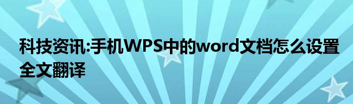 最近關(guān)于手機(jī)WPS中的word文檔怎么設(shè)置全文翻譯在網(wǎng)上的熱度是非常高的,很多網(wǎng)友們也都是非常關(guān)注手機(jī)WPS中的word文檔怎么設(shè)置全文翻譯這個事情,為此小編也是在網(wǎng)上進(jìn)行了一番搜索查閱相關(guān)的信息,那么如果說有感興趣的網(wǎng)友們想知道具體的情況的話,小編就把自己所搜集到的一些信息分享給大家吧。