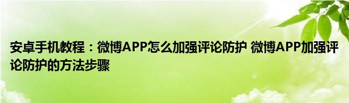 如今使用安卓手機的小伙伴們是越來越多了,那么安卓手機當中是有很多小技巧的,這些技巧很多小伙伴一般都是不知道如何來實用的,就好比最近就有很多小伙伴們想要知道微博APP怎么加強評論防護 微博APP加強評論防護的方法步驟 ,那么既然現(xiàn)在大家對于微博APP怎么加強評論防護 微博APP加強評論防護的方法步驟 都感興趣,小編就來給大家分享下關(guān)于微博APP怎么加強評論防護 微博APP加強評論防護的方法步驟 的一些信息吧。